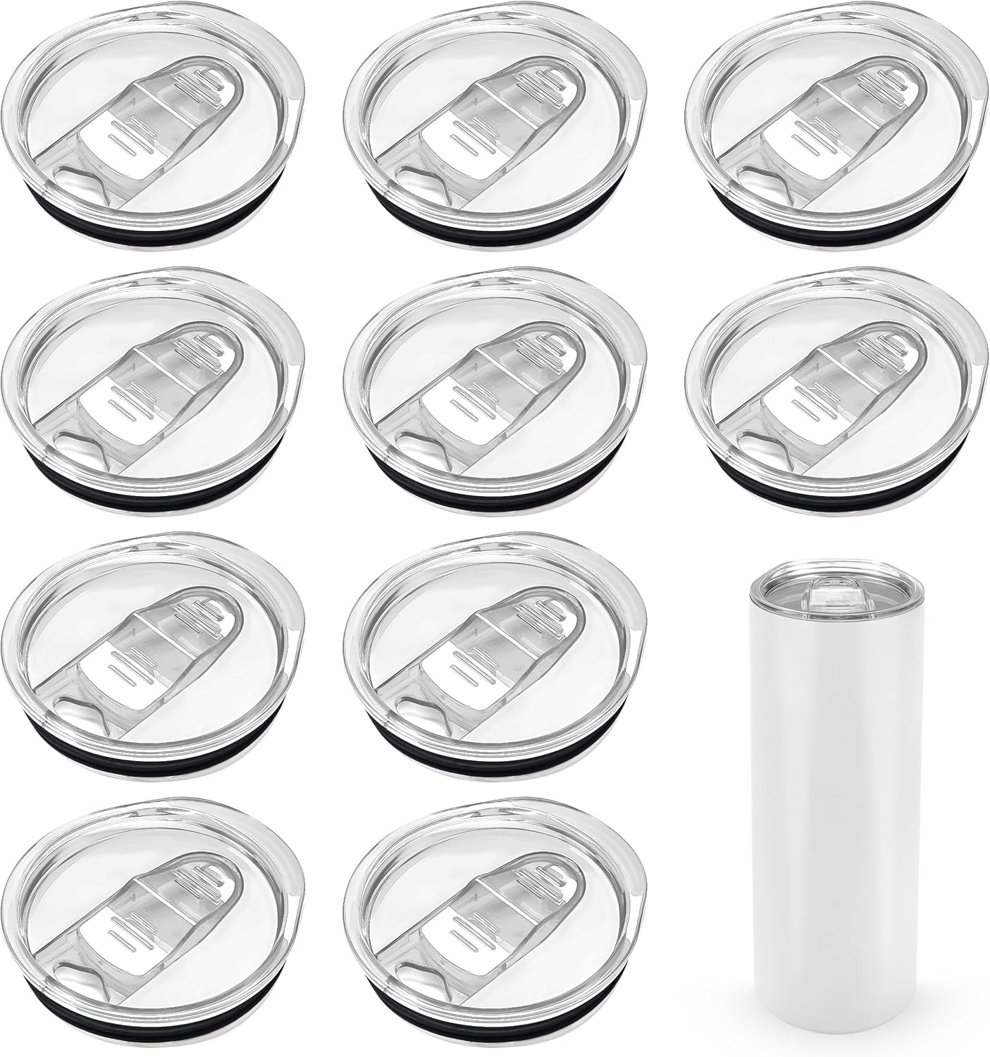 Joyclub 10 Pack 20 oz Skinny Tumbler Replacement Lids Fit for 20oz Sublimation Tumblers Splash Resistant Acrylic Sliding Covers Straw Friendly Daily Use DIY Decor (Clear)