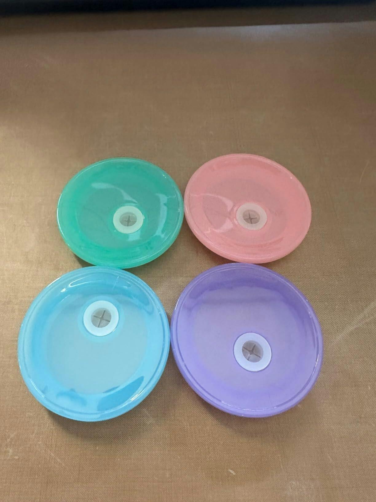 Loved the color of these lids. Was very happy that they fit all my glasses. They seem like they’ll be incredibly easy to clean. My only complaint was the straw would not go into the silicone stopper. I ended up using some scissors to perforate the hole and now my straws fit. I’m incredibly thrilled!