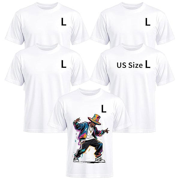 5 Pack Sublimation T-Shirts Bulk – Unisex White Polyester for Heat Transfer -  L