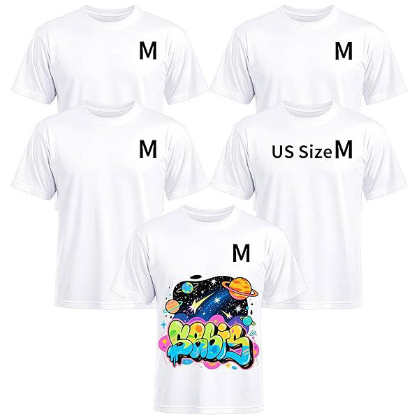 5 Pack Sublimation T-Shirts Bulk – Unisex White Polyester for Heat Transfer - M
