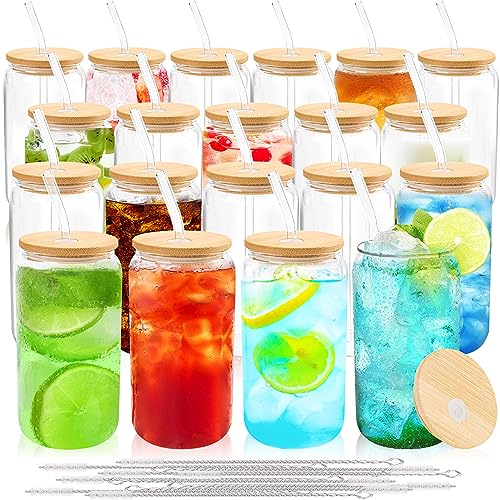 Details: Glass Cups with Bamboo Lids and Straws 20 Set 16 oz